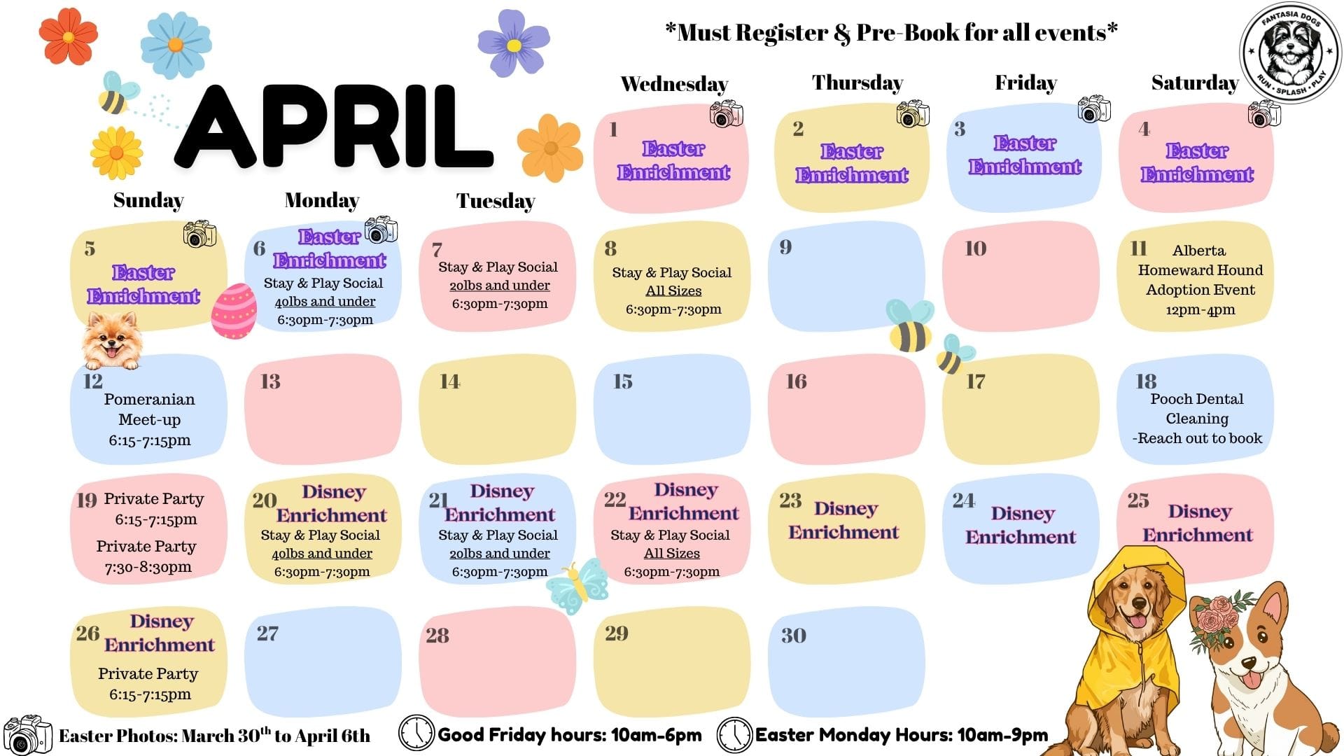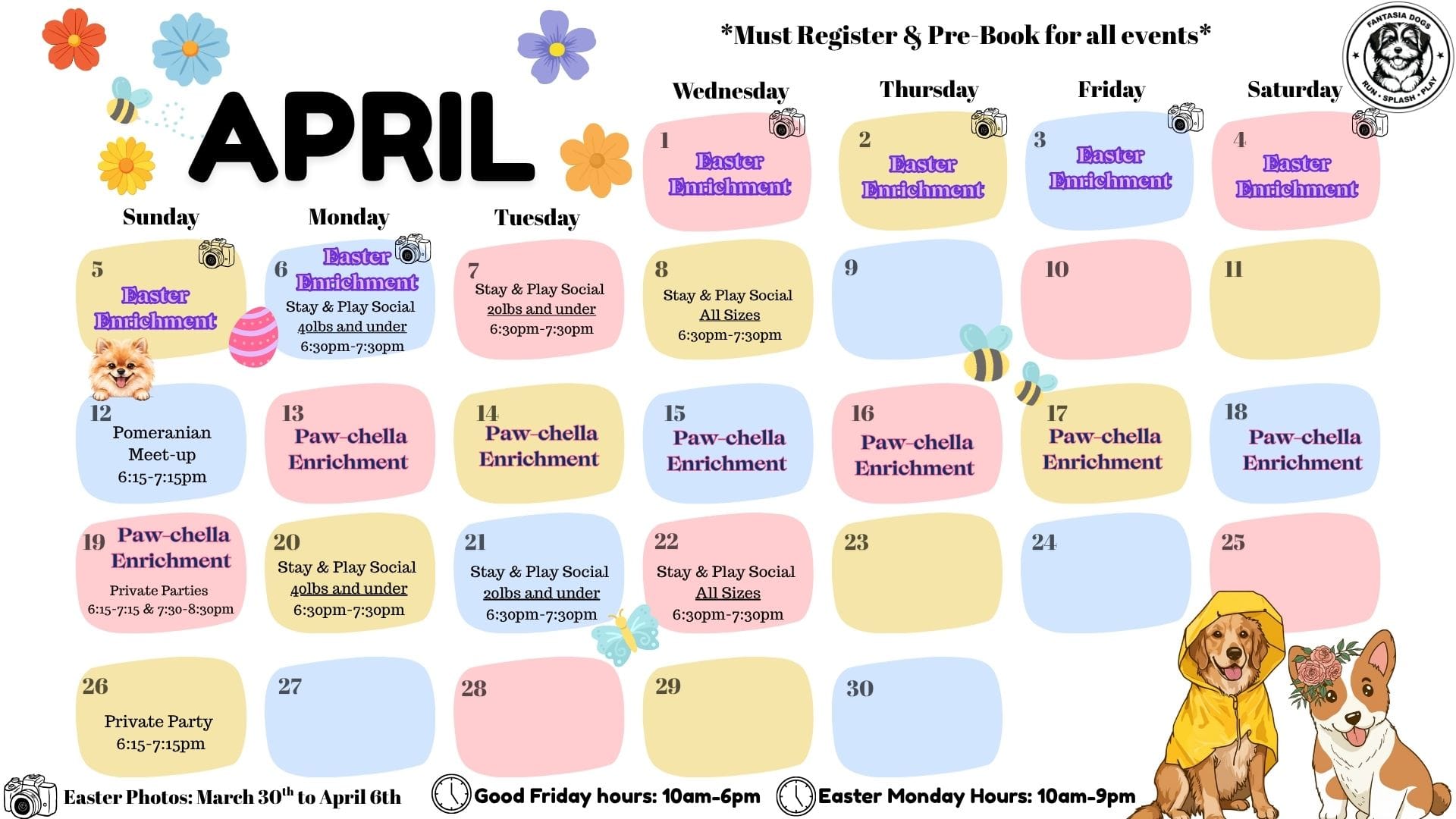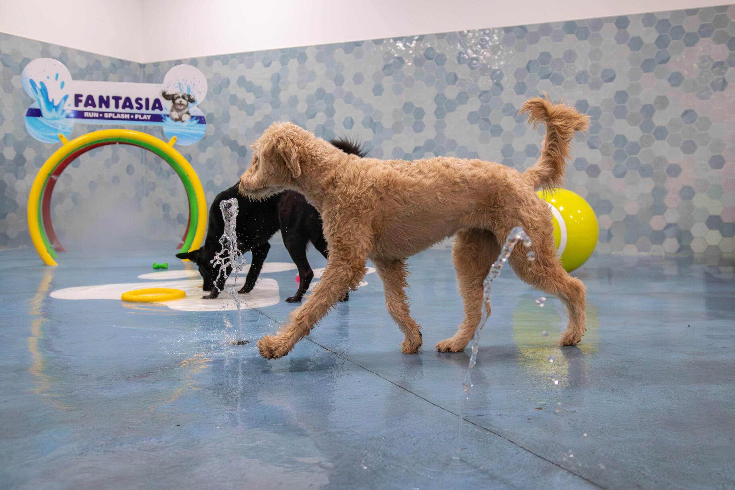 Our indoor facility offers a range of advantages: say goodbye to muddy paws, frozen toes, and concerns about smoky air quality. Enjoy a clean, comfortable, & safe environment for your pets all year round! They will also come home dry after their fun in the splash park!