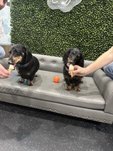 Dogs are welcome on leash or in a stroller.